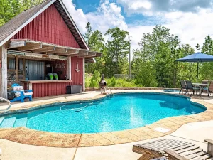 Come experience beauty with a touch of wilderness. Nestled on a hilltop, along Bear creek and just 10 minutes from Lake Ouachita and Lake Hamilton. Private and gated 4-acres, makes Old Bear Creek Lodge perfect for a destination family vacation or small event. With 2 living areas there is plenty of room for everyone, so bring the whole family.